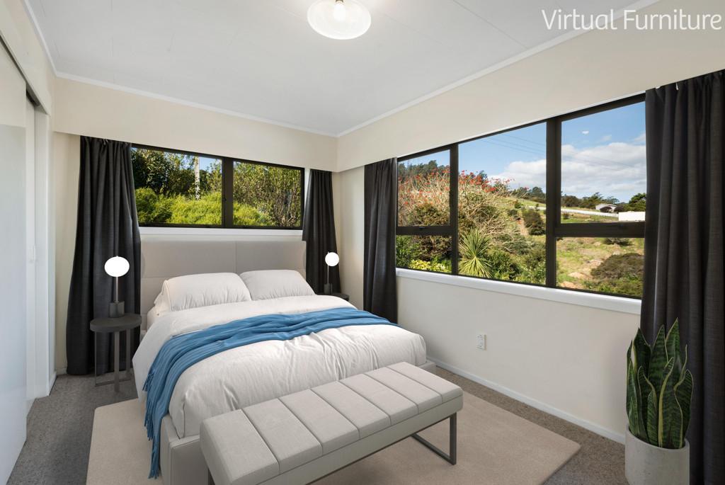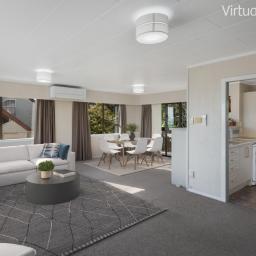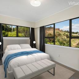 Inside, the open-plan living area flows effortlessly onto an extended entertainer's deck with glass balustrades, inviting you to relax, entertain, or simply watch the colours shift across the horizon. Natural light fills the home, complementing the modernised kitchen, three double bedrooms, and a welcoming living area warmed by both a fireplace and heat pump.