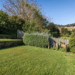 The section continues the theme of easy living, with terraced vegetable gardens, established fruit trees, and a private lawn offering space to enjoy or further develop.