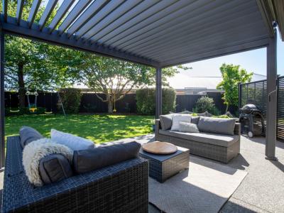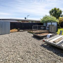 Outside, the established section is designed for low maintenance living, complete with raised vege gardens and a large garden shed. There's a secure gated entrance, storage space for a trailer or toys behind the home, and plenty of off-street parking. The carpeted garage is the icing on the cake!