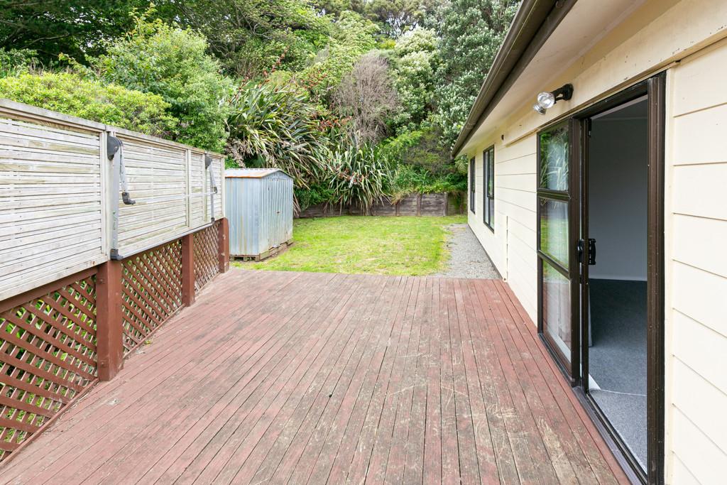 This sunny single level 3-bedroom, 1-bathroom home is perfect for families, investors and first-time buyers looking for comfort and convenience in a neighborhood close to bustling Porirua city. 3 bedrooms, provide ample space for family and guests. A well-appointed bathroom with a separate shower for added convenience. The kitchen with new vinyl flooring is equipped with an electric cooktop, range hood, an island, and stone kitchen bench, designed for functionality and convenience. Enjoy the open-plan design that seamlessly combines kitchen, dining, and lounge areas, creating a warm and inviting atmosphere and a practical space for everyday gatherings and special occasions. Step outside to your private deck from the lounge, perfect for entertaining or relaxing in the sun. The partially fenced section offers privacy, and a safe space for children and pets to play. The property includes a carport space and an additional open parking space for your convenience.