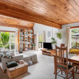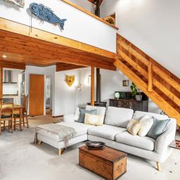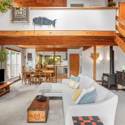 Four decent sized bedrooms, two bathrooms, open plan living and a mezzanine up top, oozing character and charm from top to bottom. Every detail from the log fire that fills winter evenings to the effortless flow to sunlit decks and garden tells a story; what a beautiful life to live.