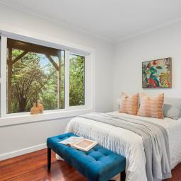 Crafted from solid double brick with stucco and finished with quality double glazed joinery, the home blends enduring character with modern comfort. Inside, the warm, well designed layout includes three bedrooms and two bathrooms, with light filled living spaces that open to a generous entertainers deck overlooking the treetops and water. It is the perfect setting for long summer evenings, quiet weekends and effortless hosting.