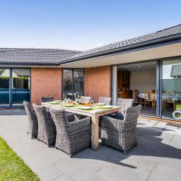 Step outdoors to a private outdoor living area, ideal for summer barbecues or a peaceful morning coffee in the sun.