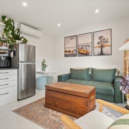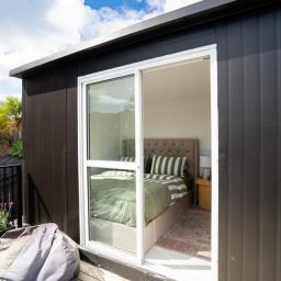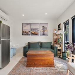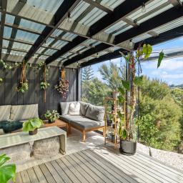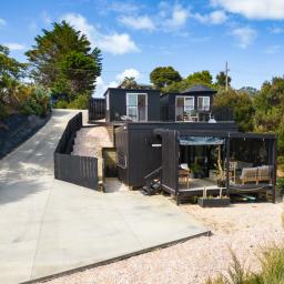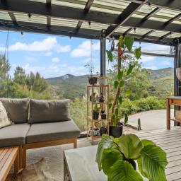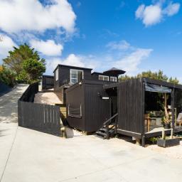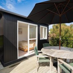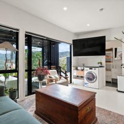 Nestled at the end of a quiet cul-de-sac, this modern tiny home offers a perfect blend of tranquility and opportunity, with north-westerly views over treetops and distant bush. The self-contained cabin features a well-equipped kitchen, laundry, and bathroom, seamlessly flowing onto a covered outdoor living area with weatherproof blinds, making it ideal for year-round relaxation and BBQs.