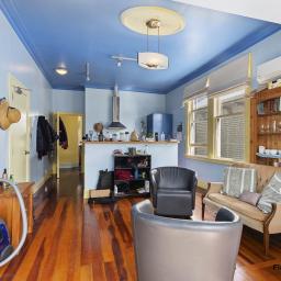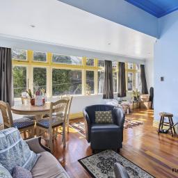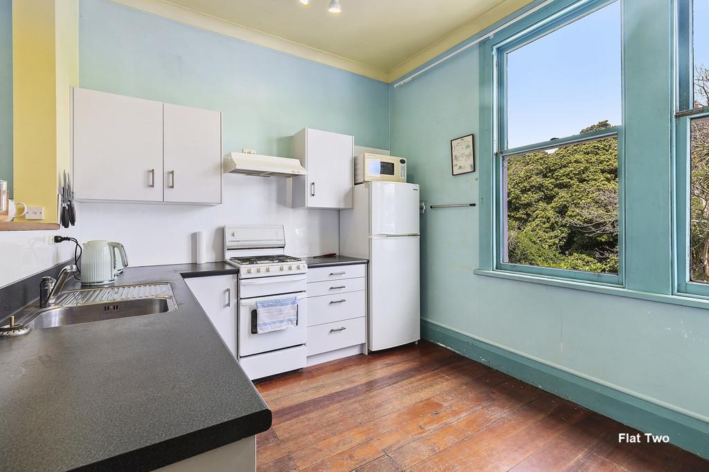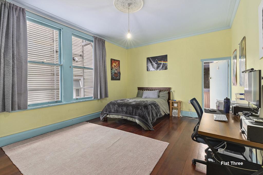 Another light-filled one-bedroom flat upstairs, offering a bathroom, separate toilet, and open-plan kitchen and living. Also returning $480 per week.