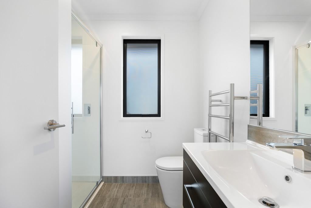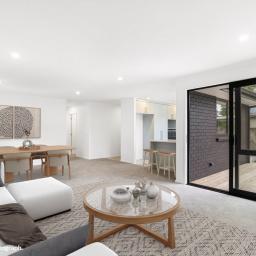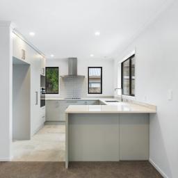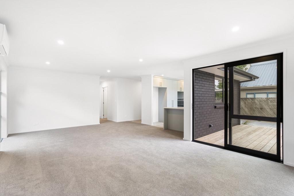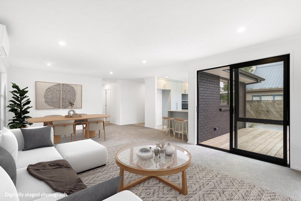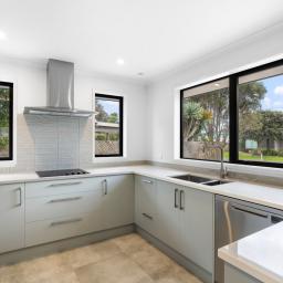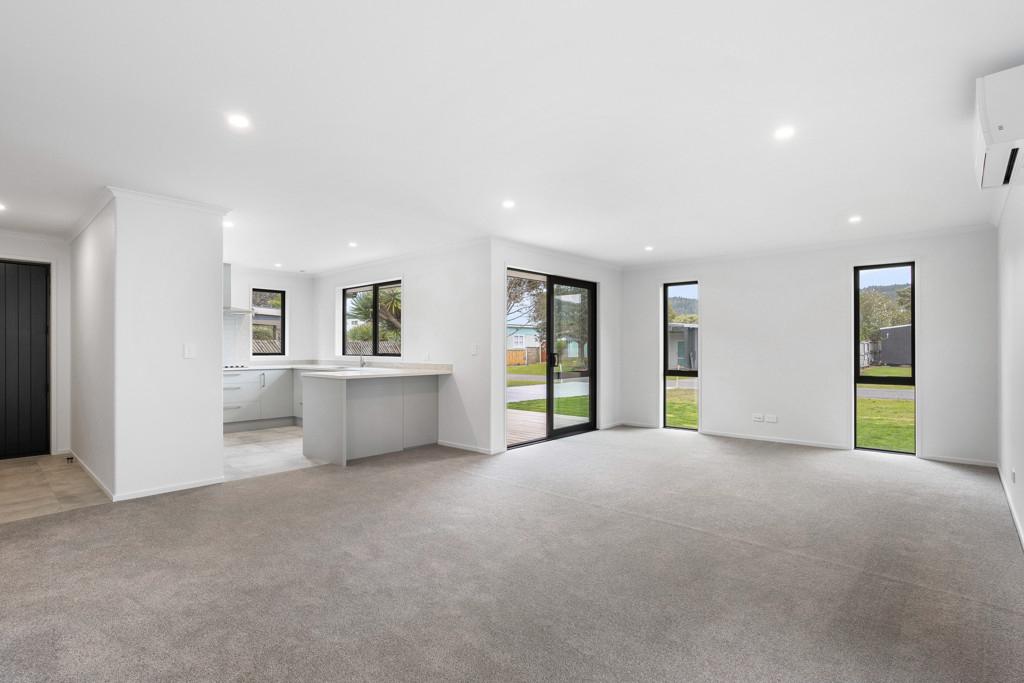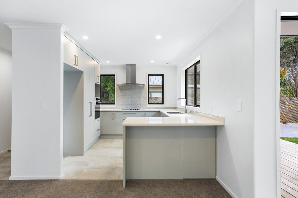 • Sleek, modern kitchen flows seamlessly to the open-plan living space that is kept comfortable year-round with a heat pump.