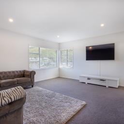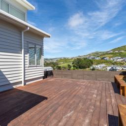 You will love the sweeping views and full sun from the separate lounge and the extra-large open plan kitchen/family/dining room; with doors to the deck and easy care patio and fenced garden.