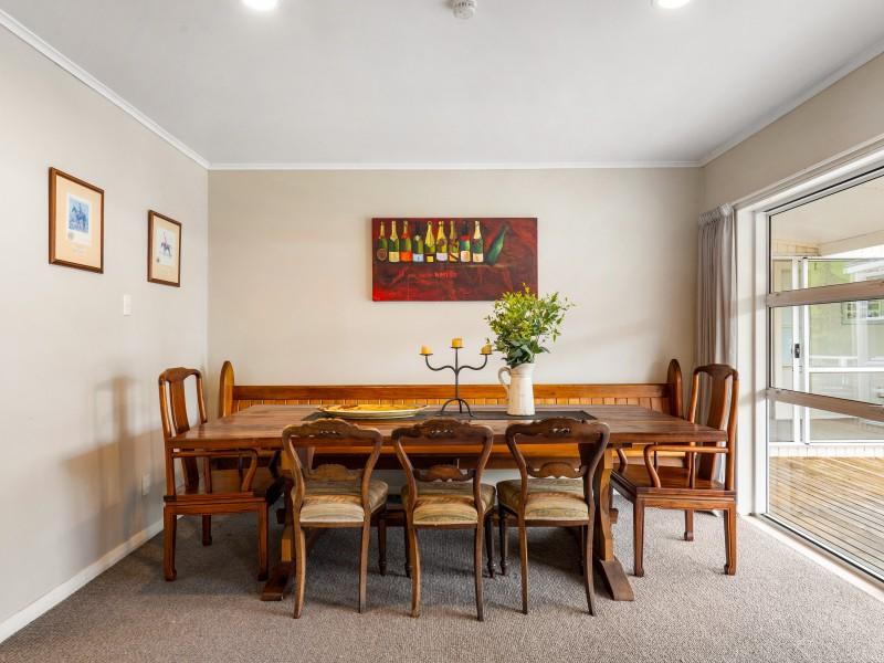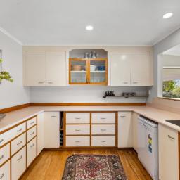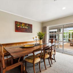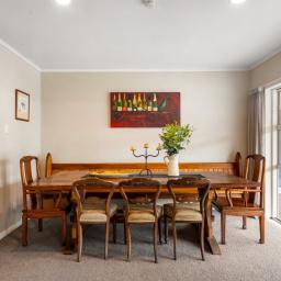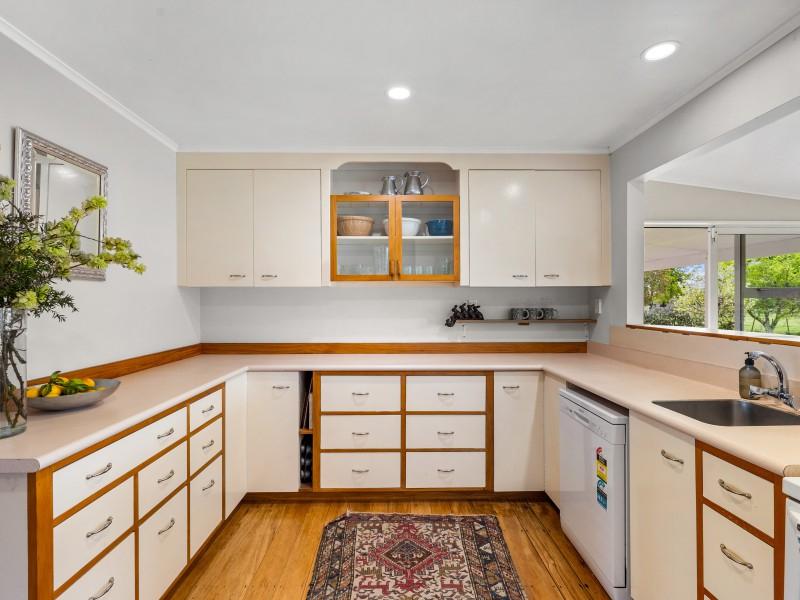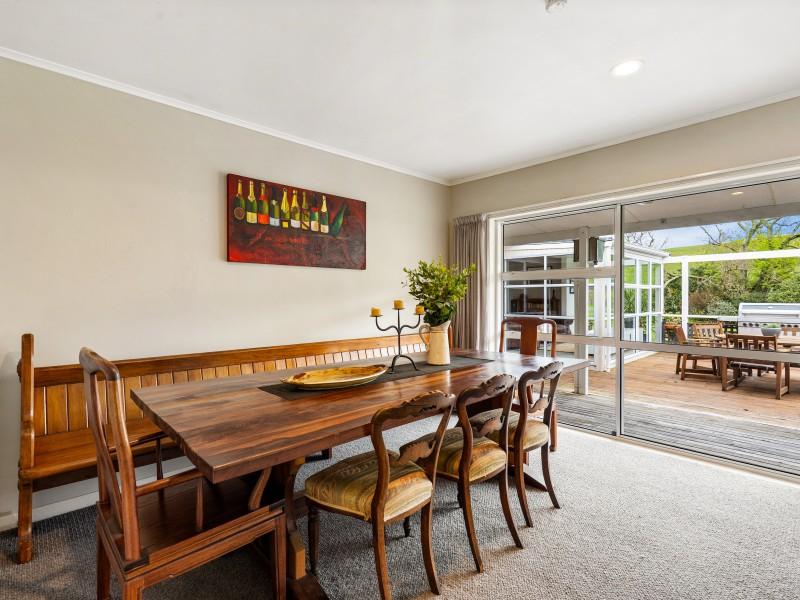 Privately tucked behind large established trees and gardens, the well-appointed family home features four double bedrooms, generous storage and plenty of natural light. The kitchen includes a charming casual dining space, plus a spacious formal dining area that flows to an inviting living room with a new Metro fire for cosy evenings.