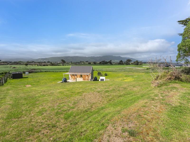 Beyond the cabin lies a canvas of bare land, providing a remarkable outdoor space that amplifies the charm of this property. The surrounding grounds offer a blank slate for landscaping, gardening, or even additional outdoor living spaces, all while boasting stunning views over the lush farmland towards the majestic mountains. The close proximity to Te Horo Beach means you can easily take advantage of the sun, surf, and sand, all while returning to your private sanctuary nestled in this secluded spot.