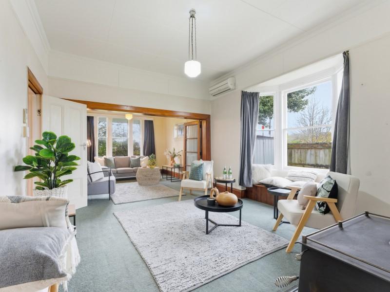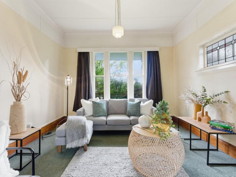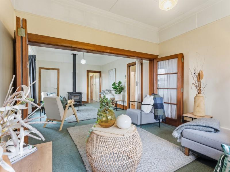 With three bedrooms and plenty of living space, this home combines comfort with timeless appeal. The partially modernised kitchen offers space for a dining table and flows easily into the living areas - two lounges that can be separated by the character bifold doors, ideal for family living or entertaining. Beautiful native timber floors and good carpets add warmth and personality throughout. The wood burner is centrally located and with good insulation, the family keep warm in the Winter months.
