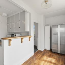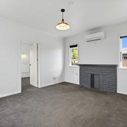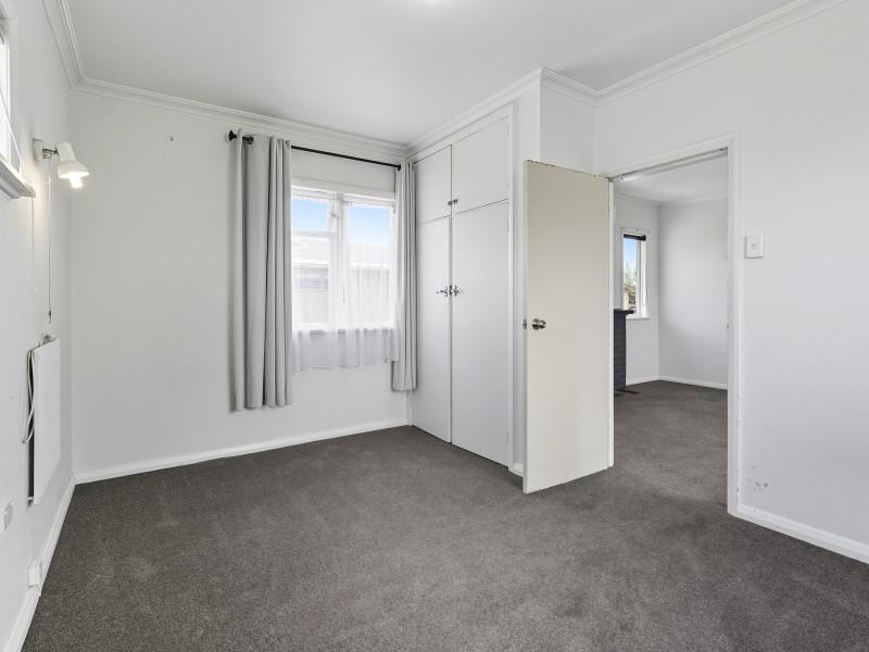 Inside, the layout is compact yet functional, with large windows drawing in natural light, and the simple design lends itself perfectly to future updates or reconfiguration. There’s a double bedroom complete with built-in wardrobe and a second single room, perfect for a child, guest, or home office. The bathroom includes a shower, vanity, and toilet, simple and practical, with space to refresh or modernise down the track. The open-plan kitchen and dining area connects seamlessly to the living zone, where a heat pump ensures warmth in winter.