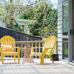 The rear deck flows out to a manageable lawn and garden area, creating an inviting setting for relaxed outdoor living and summer gatherings.