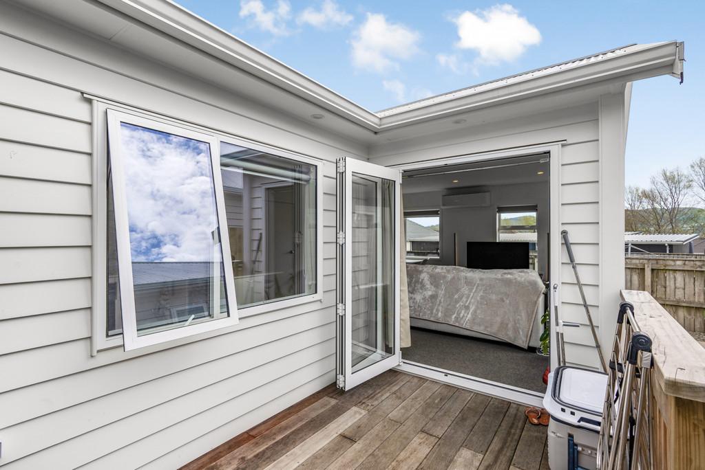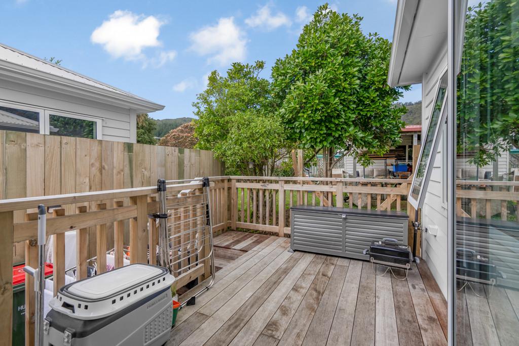 The open-plan living, dining, and kitchen area flows seamlessly onto a deck, ideal for morning coffee or summer dinners. The kitchen boasts a gas cooktop, electric oven, dishwasher, designated microwave cubby, and a beautiful backsplash.