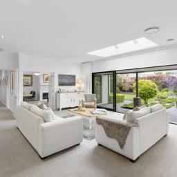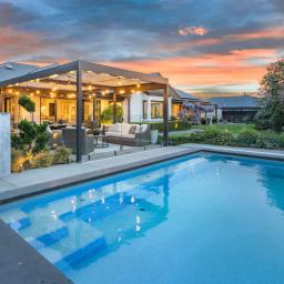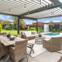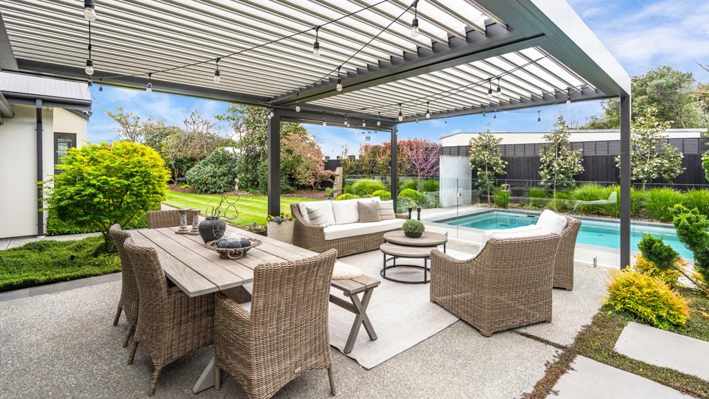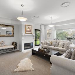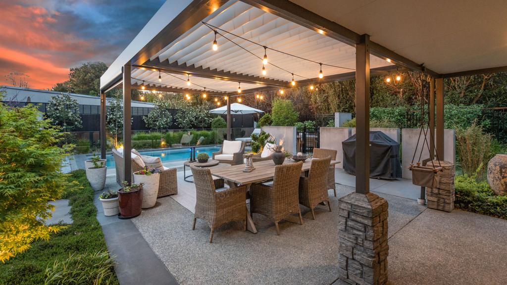 Designed to impress, it is evident that every detail has been carefully considered, from the over-height stud to the quality decor & fittings which feature throughout the home. Whether you're hosting gatherings or enjoying quiet moments of serenity, the stylish living area offers the perfect backdrop for every occasion & includes the kitchen complete coffee station nook, wine fridge & central island for effortless entertaining. An adjoining yet separate formal lounge, complete with a gas fire & elegant mantelpiece, offers a refined space for quiet relaxation. Alfresco dining & living can be enjoyed as an easy extension of the indoor living spaces with the weather-sensing louvre system with remote-controlled blind allowing you to entertain in style year-round.