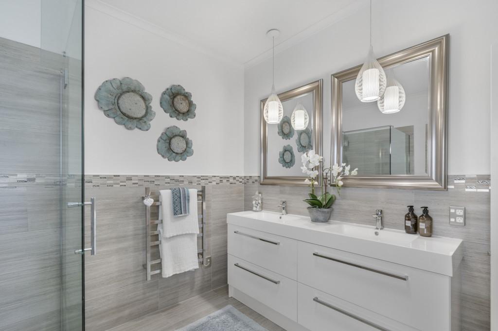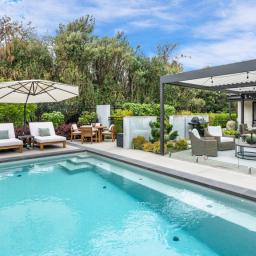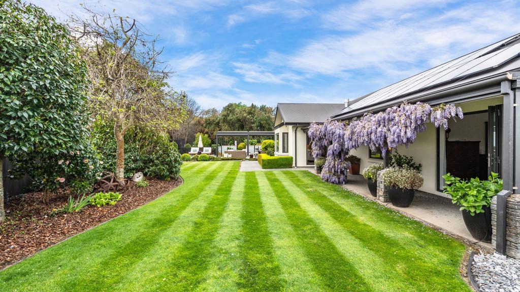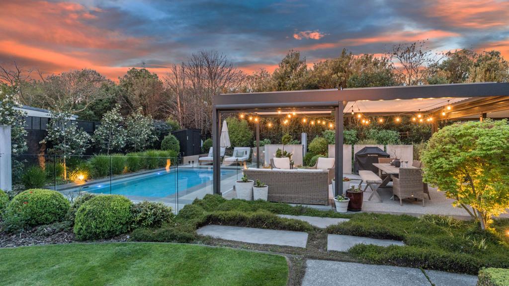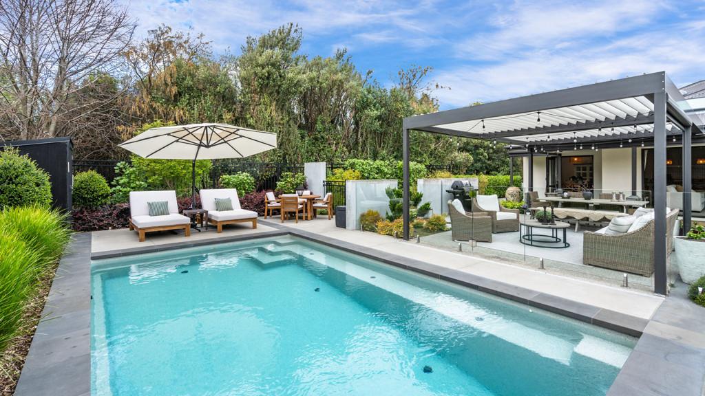 Designed by Goom Landscapes, the outdoor environment is equally impressive. The heated, self-cleaning saltwater swimming pool invites effortless enjoyment, while solar-powered garden lighting, raised & fully irrigated vegetable gardens, a garden shed & an automated irrigation system enhance both beauty & practicality.