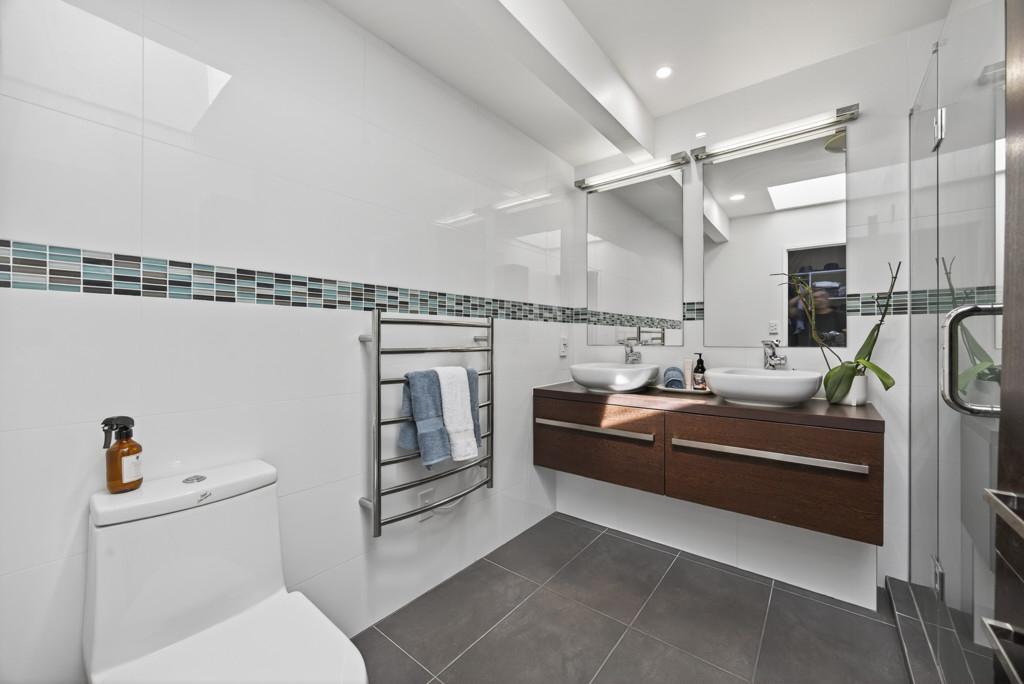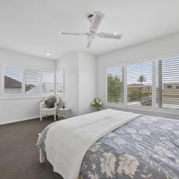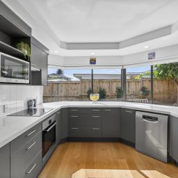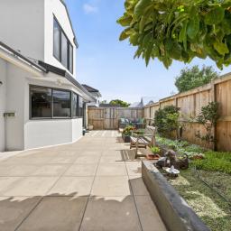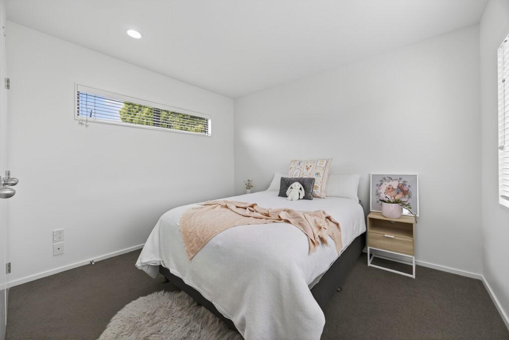Retreat to the oversized master suite, complete with walk-in wardrobe, ceiling fan for balmy evenings, and a spacious ensuite boasting dual vanities. Catch morning glimpses of majestic Rangitoto from your bedroom window. Two additional well-appointed bedrooms are serviced by a separate family bathroom.