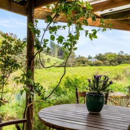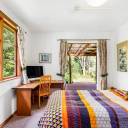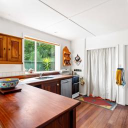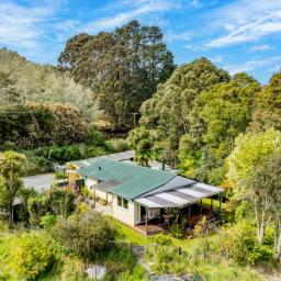 The cosy three-bedroom home features native timber flooring, a bespoke custom-made kitchen, and generous outdoor decking and entertainment areas overlooking your own tranquil valley.