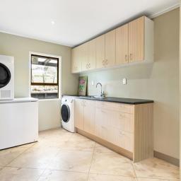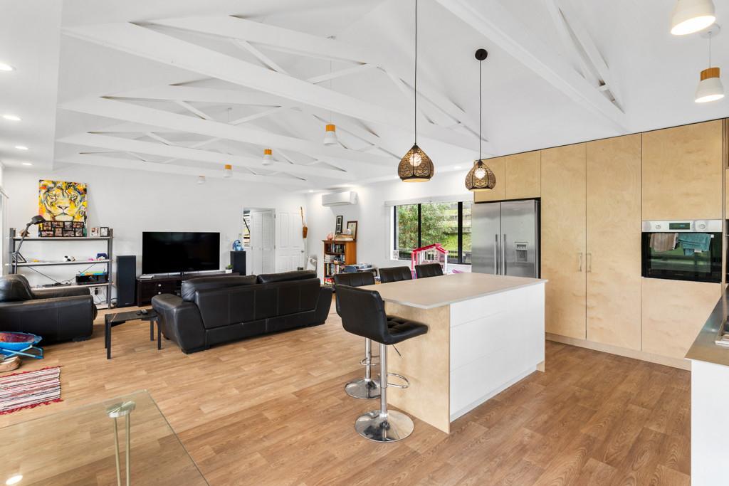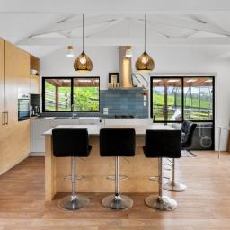 A mezzanine floor provides a second lounge and office, ideal for working from home or quiet retreat. Every angle of this home celebrates the outlook, rolling pasture, established trees, and complete privacy. Also including underfloor heating & a 25L under-bench hot water cylinder.