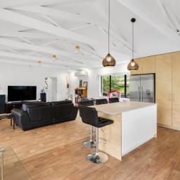 The main residence (approx. 203m²) exudes warmth and character with a touch of Italian influence, high sarked ceilings, tiled floors, skylights, and a designer kitchen set the tone. Featuring four bedrooms (each with its own balcony overlooking the rural landscape), two bathrooms, and open-plan living and dining that flow effortlessly outdoors to the north-facing patio and in-ground pool, the perfect space for summer entertaining or peaceful relaxation.
