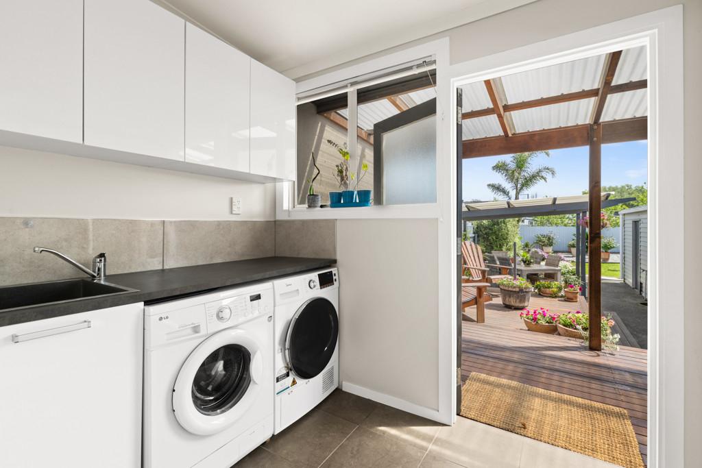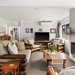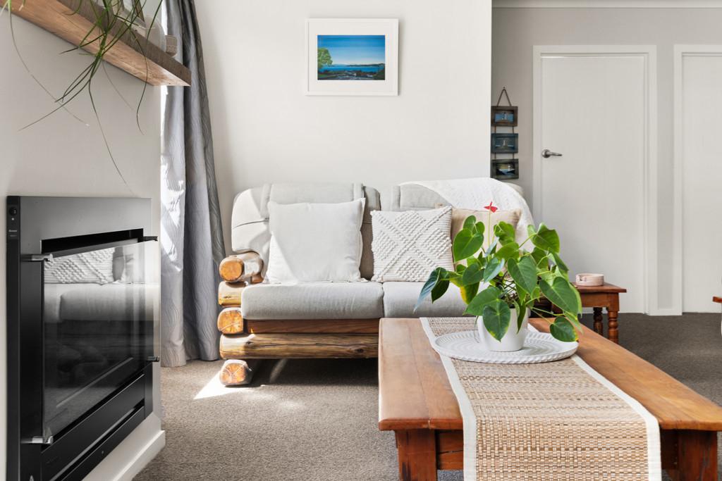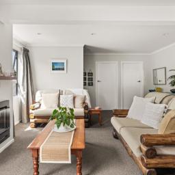 Thoughtfully appointed throughout, the home boasts partial double glazing, a cosy gas fire, a heat pump, reticulated gas hot water, and a gas hob, ensuring year-round warmth and energy efficiency.