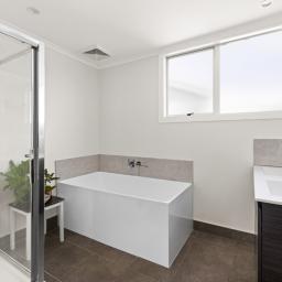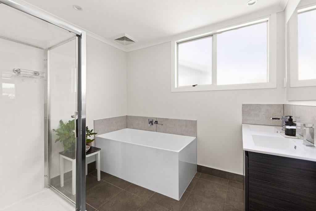 Three well-proportioned bedrooms offer excellent accommodation for families or guests. The master suite is a fabulous parental retreat complete with a walk-in wardrobe and modern ensuite. The stylish main bathroom has been thoughtfully designed to balance style and practicality, featuring a separate shower and bath, double basins, a standalone WC, and a cavity slider to enhance privacy and flow.