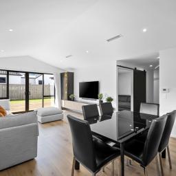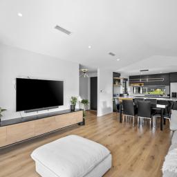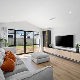 Designed with modern family living in mind, the open-plan living area - enhanced by a stunning cathedral ceiling and bespoke joinery - flows seamlessly to the outdoor entertaining space, perfect for relaxing or hosting on warm summer evenings.