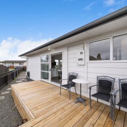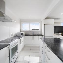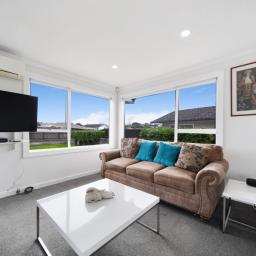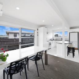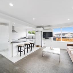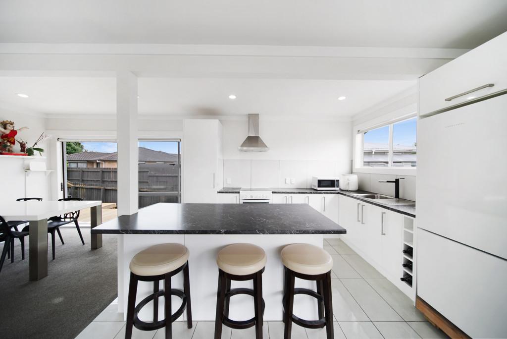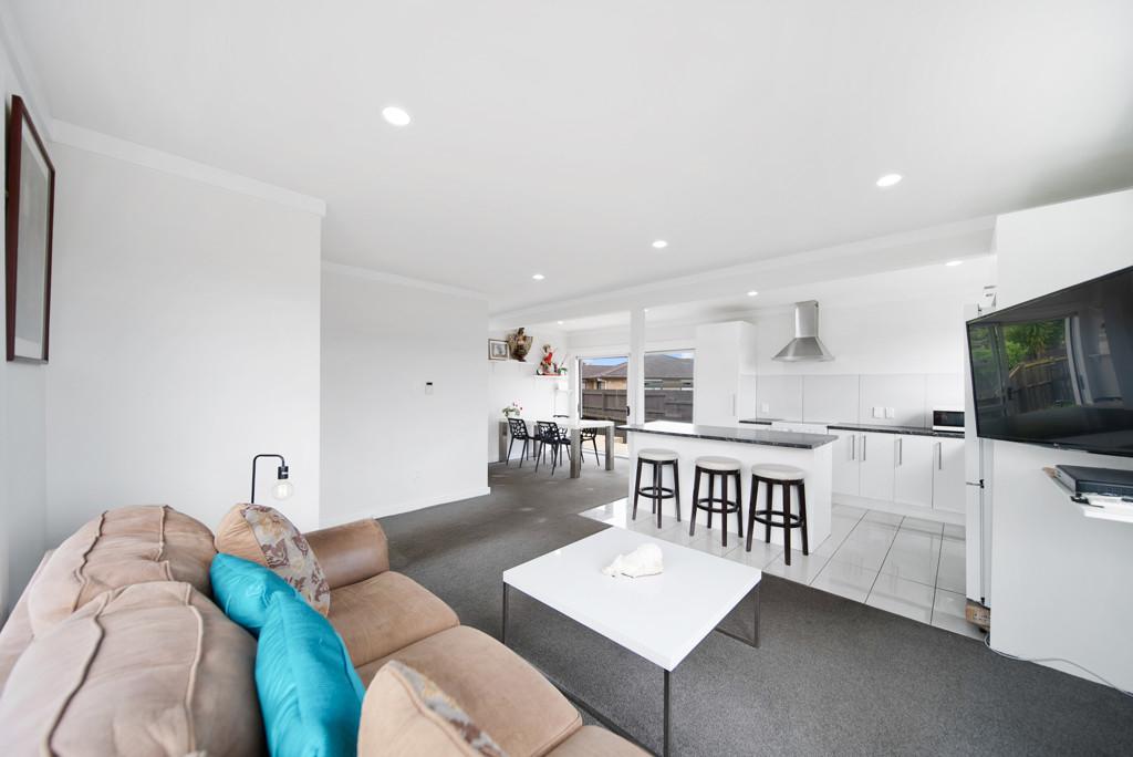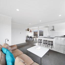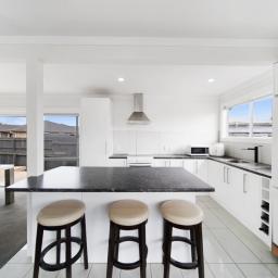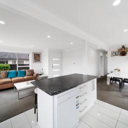 The spacious, light-filled open-plan living and dining area features a well-appointed kitchen with a large breakfast bar - perfect for family meals and entertaining. Sliding doors open out to a sunny deck, creating an effortless indoor-outdoor flow.