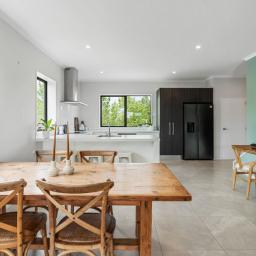 • Sun-Drenched Spaces: Open-plan kitchen with stone benchtops and induction cooking.