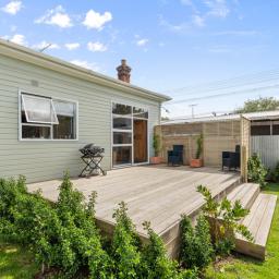 At the rear, the open-plan kitchen and dining area combine classic style with everyday practicality, forming the true hub of the home. From here, sliding doors extend to a large private deck, perfect for entertaining or relaxing, with seamless indoor-outdoor connection. The well-fenced section includes two handy storage sheds, providing space and versatility for family living.