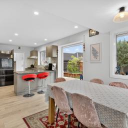The expansive kitchen faces out to the fully fenced backyard; it has excellent storage and features a breakfast bar, so the kids can eat and keep the chef company! The kitchen flows seamlessly into the dining area and the outdoor deck, which is sheltered from those easterly winds. There is a large stand-alone double garage and a garden shed for extra storage.