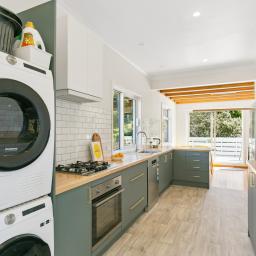 And location? You’re tucked up just far enough to feel calm and elevated, yet Lyall Bay School’s at the bottom of the street, and the beach, cafés, Kilbirnie Village and surf are all within easy reach. Whether it’s your first paddle of the morning, coffee on the deck, or watching the evening lines peel in, 42 Buckingham Street delivers the kind of daily surf report most of us only dream about.