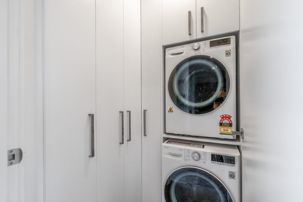 The modern kitchen is smart, functional with plenty of storage. While the good-sized bathroom is complemented by an extra toilet and vanity in the master bedroom. Two heat pumps keep the home toasty in winter and cool in summer.