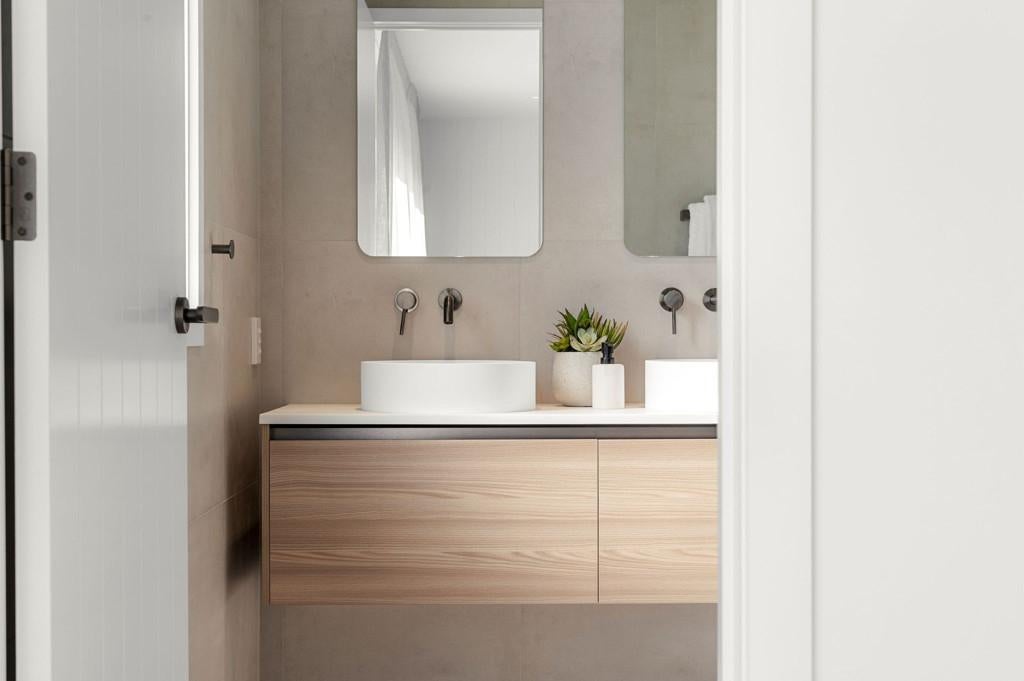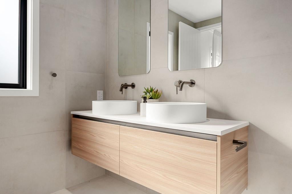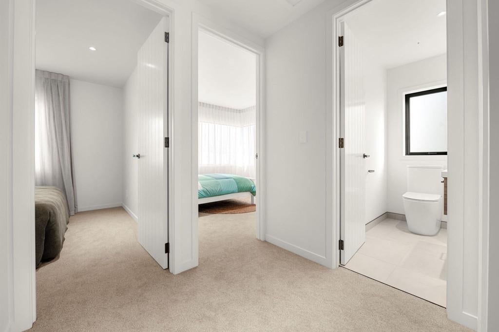 There's a powder room at ground level, and a family bathroom and separate toilet servicing the first-floor bedrooms, which have custom built-in storage organisers. The master bedroom doesn't disappoint. Hardiegroove feature wall adds texture, and the ensuite features a double shower with dual rainwater shower heads. A studio-style bedroom above the garage is perfect for home based workers, guest stays or boarders.