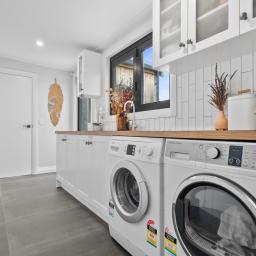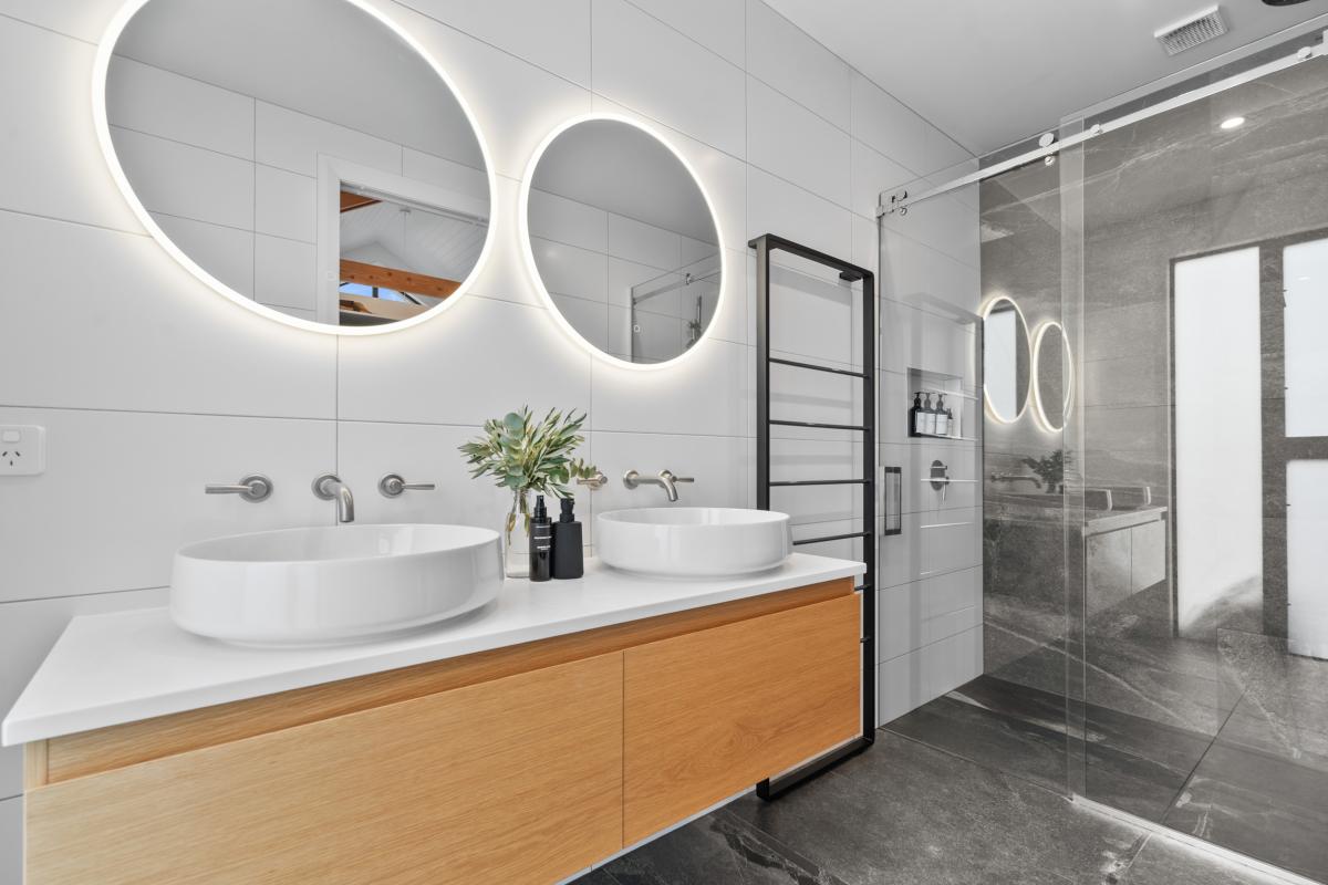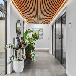 The thoughtful design continues throughout, from the triple UV water filtration system to the double internal-access garage, wine cellar, and lined attic space that could be a kids hideaway or extra storage space.
