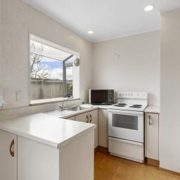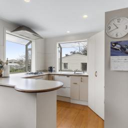 The kitchen is functional and welcoming, with plenty of storage and bench space to make daily life easy. Large windows allow natural light to pour in, creating a warm, inviting feel throughout the home.