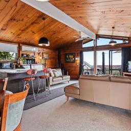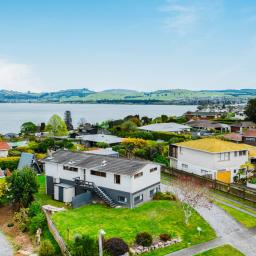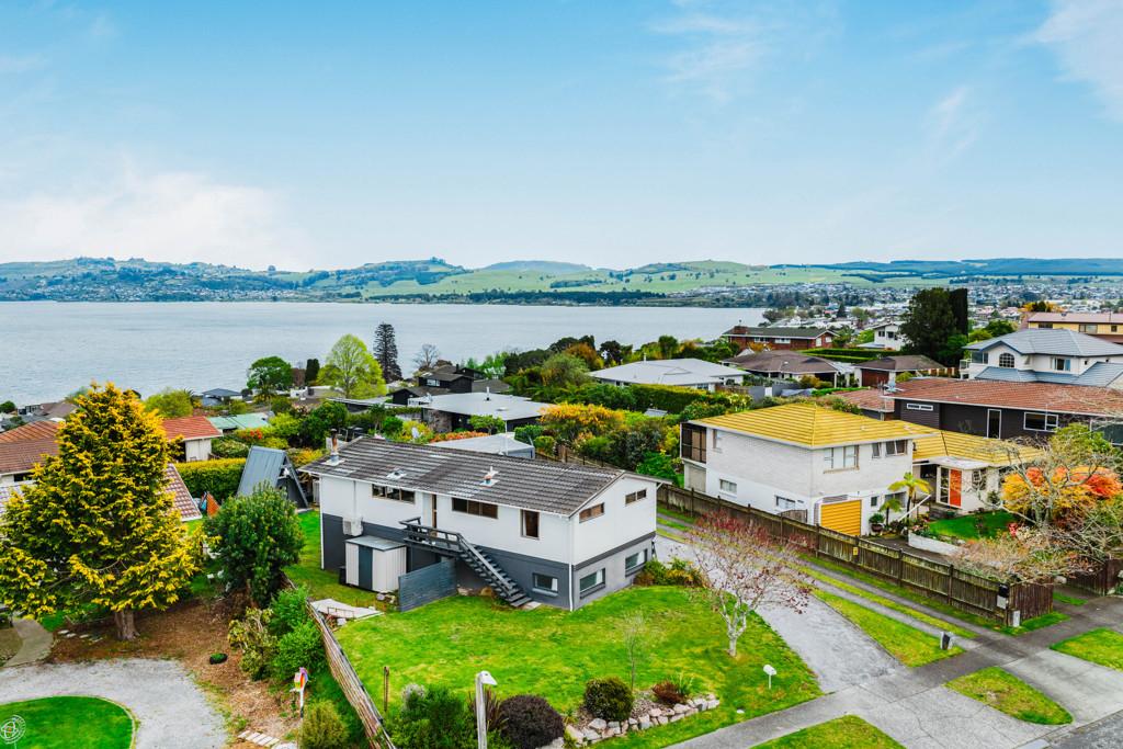 This Lockwood home sits proudly on just over 800sqm of land, with great street frontage and a long rectangular shape, making it ideal for future development (subject to Taupo District Council Consent). The open plan living, dining and kitchen take in the stunning views, the sparkling blue lake glistening away is the perfect backdrop to life. The kitchen has been recently refurbished, offering ample storage, good benchtop space and connecting to the entertainment zones with ease. There is a wood fire and heat pump to keep you super cosy on those winter nights and a great deck area for the summer BBQs ahead. On this upper level are three good-sized bedrooms and a family bathroom with a separate toilet. Great storage throughout, complemented by a separate laundry room is ideal for family life.