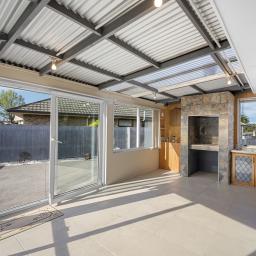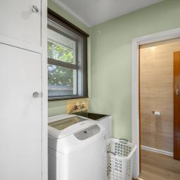 The kitchen leads to a practical laundry with plenty of storage, while three generous double bedrooms offer comfort and privacy for the whole family. A separate bathroom with both bath and shower, plus a separate toilet, adds convenience.