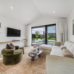 Architectural pavilion-style elegance combine in this striking three-bedroom home, offering contemporary style and everyday practicality. Built in 2024 and filled with natural light, the home's soaring cathedral ceilings and high-spec detailing create a sense of space and sophistication throughout.