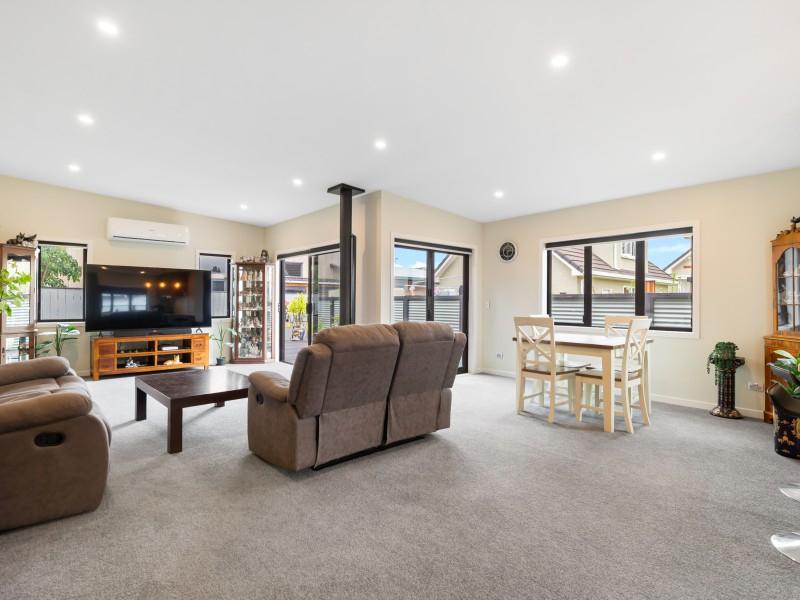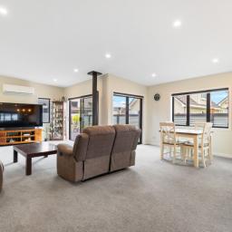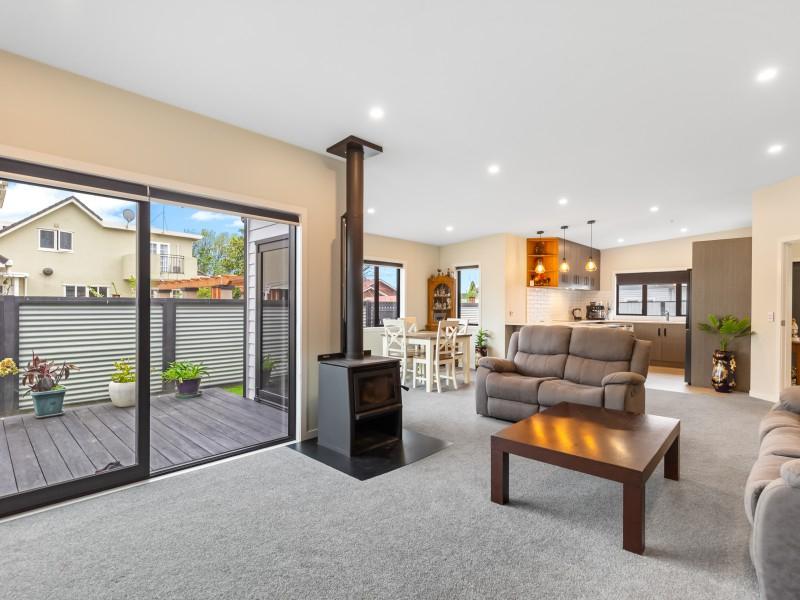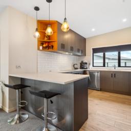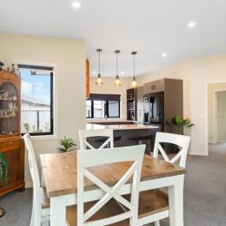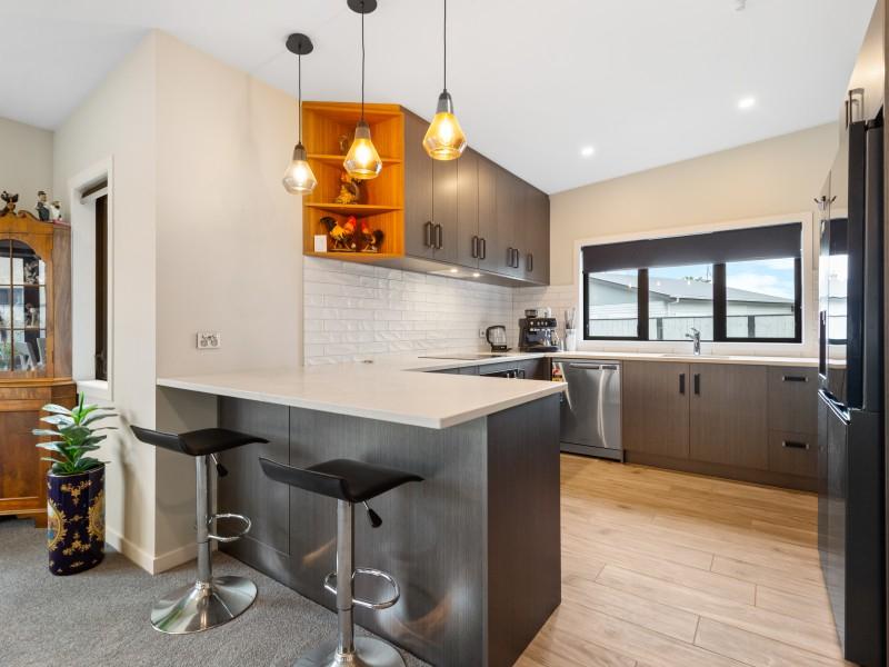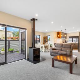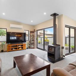 The modern kitchen is equipped with top-of-the-line appliances that cater to the needs of the keen home chef while offering ample storage and preparation space. The heat pump ensures year-round comfort, and on cooler evenings, the woodburner adds a cosy warmth, casting a welcoming glow throughout the home.