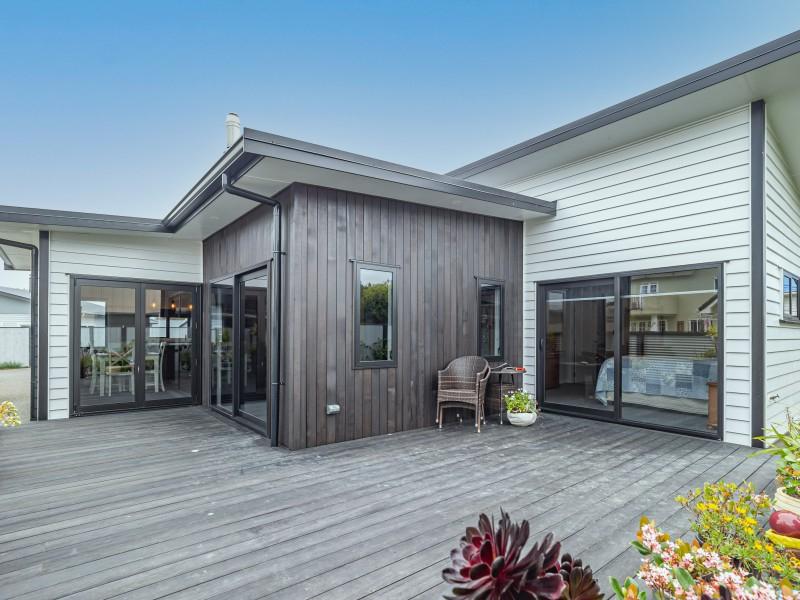 Stepping outside, you’ll find a splendid deck that extends the living space, perfect for alfresco dining or morning coffees.