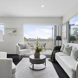 Tucked away in an exclusive style enclave, this end townhouse offers a balance of peace, privacy & convenience. Securely positioned off the road, enjoys an elevated, sun-filled aspect with sweeping views across Tuff Crater & a glimpse of Rangitoto Island - the perfect backdrop for relaxed everyday lifestyle.