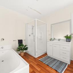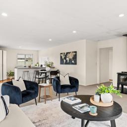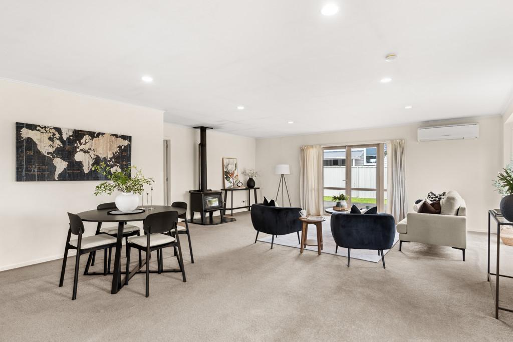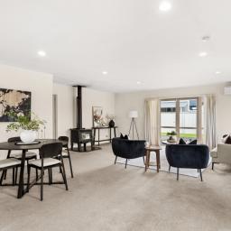 A heat pump and log burner ensure year-round comfort, keeping the home cozy through Wairarapa's cooler months.
