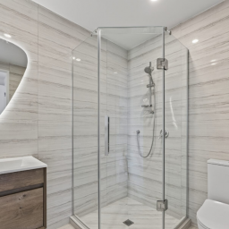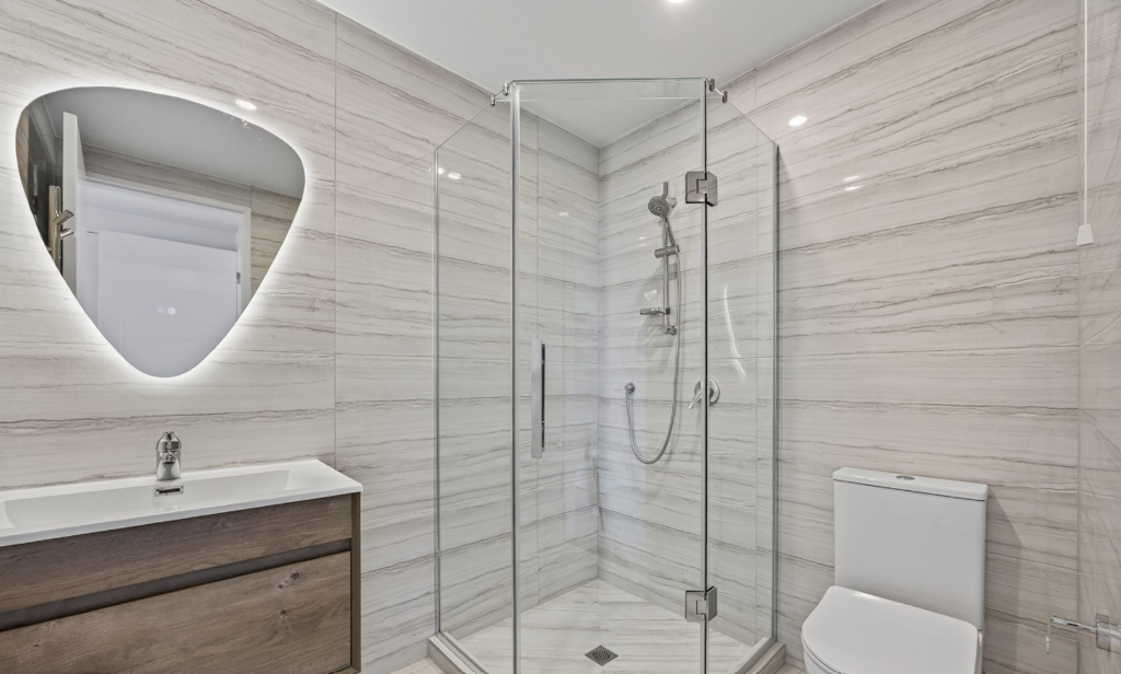 The kitchen sets the tone with its sleek oak and white cabinetry, black benchtops, and LED accents - a statement in style and practicality. Bathrooms are equally refined, featuring floor-to-ceiling tiles and LED mirrors for a polished finish.