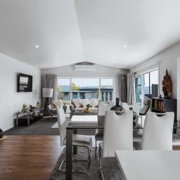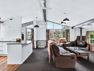 Thoughtfully designed to focus on light and warmth. The heart of the residence is the expansive living area, perfectly oriented to the North, ensuring the space is flooded with natural light. This sun-drenched zone flows seamlessly through large sliders to the North-facing deck, creating a private setting for everything from quiet relaxation to lively entertaining.