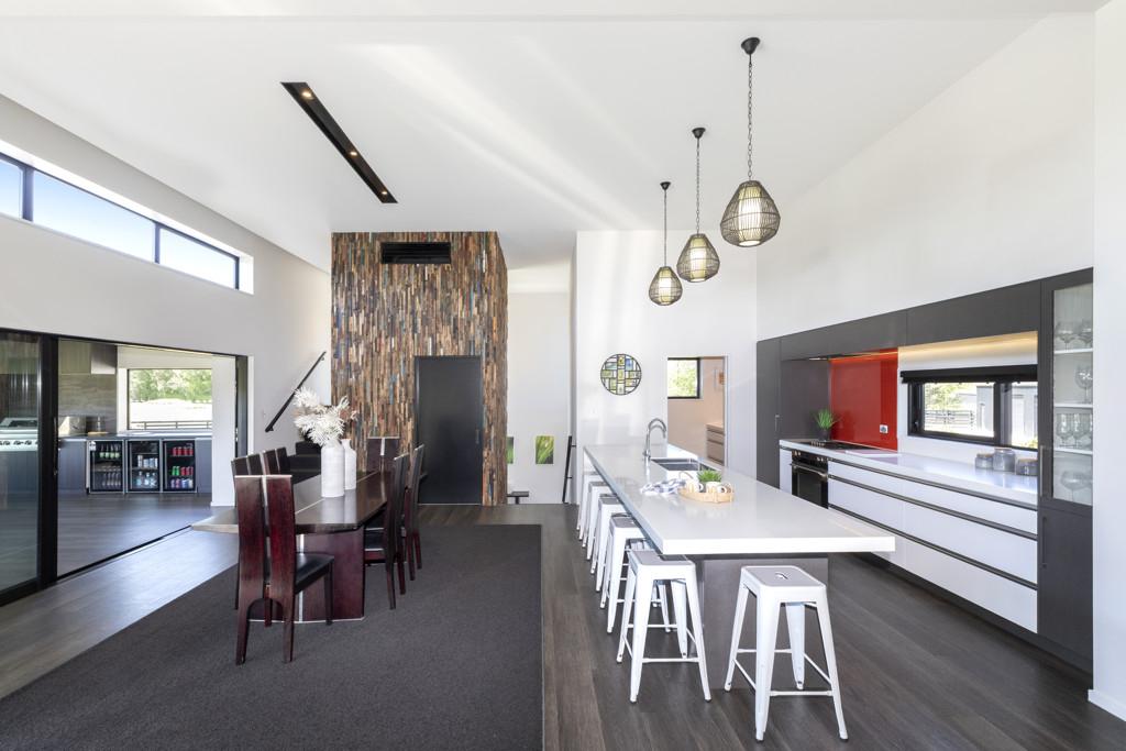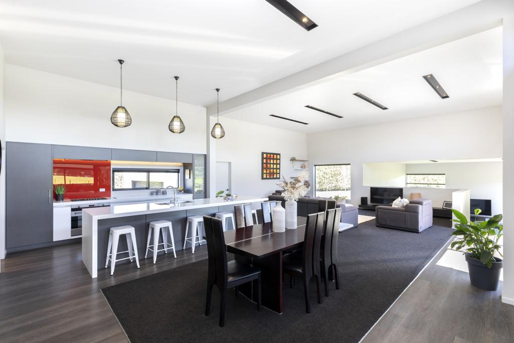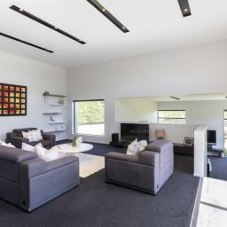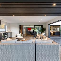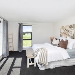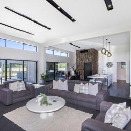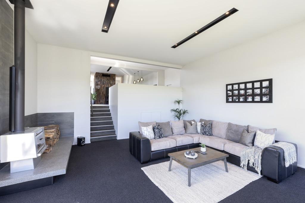 Thoughtfully designed for modern family living & effortless entertaining, the expansive five-bedroom, three-bathroom home showcases quality finishes & intuitive functionality throughout. Home automation with Econix will simplify living in this show stopping home. At its heart lies a stunning contemporary kitchen featuring Corian benchtops, sliding window, large central island, Smeg dishwasher, underbench oven, gas hobs, filtered tap water, additional hot water cylinder & a walk-in pantry with double fridge space. The adjoining dining & living zones form the perfect hub for family gatherings, with dual sliders opening to a sun-soaked deck that seamlessly merges indoor & outdoor living. Another set of sliders leads to a spectacular enclosed barbecue & entertaining area - perfect for year-round enjoyment. A semi-separate lounge, stepping down from the main living area, offers a relaxed retreat for cosy evenings or quiet downtime. Comfort is assured in every season with electric blinds, a Metro log fire, ducted heat pump system, additional storage & underfloor heating powered by a hot water heat pump servicing both the slab & cylinder. Accommodation is both generous & private. Upstairs, a striking floating boardwalk promotes energy-efficient heat flow throughout the upper level. The master suite enjoys sweeping views & features a walk-in wardrobe along with a beautifully appointed ensuite complete with a tiled shower. Two additional bedrooms share a stylish family bathroom with a bath, tiled shower & convenient laundry chute. On the lower level, two further bedrooms include one with its own ensuite-perfect for guests or extended family. Outdoor living has been thoughtfully designed for both ease & enjoyment. The fully enclosed BBQ area, capturing stunning views across the grounds, features a gas BBQ, three bar fridges & a welcoming open fire - creating the ultimate year-round entertaining retreat. Large stacker sliding doors open seamlessly to a sun-drenched deck with stairs leading to the expansive lawns. A substantial 7.5m x 7.5m double garage with an over-height door easily accommodates larger vehicles, while the included Husqvarna auto mower ensures lawn maintenance is effortless.