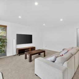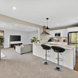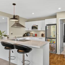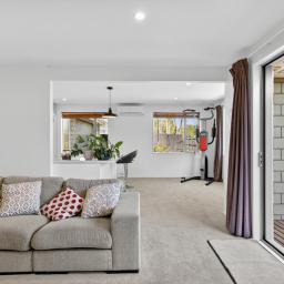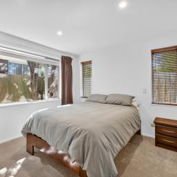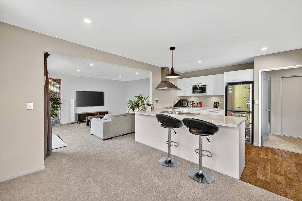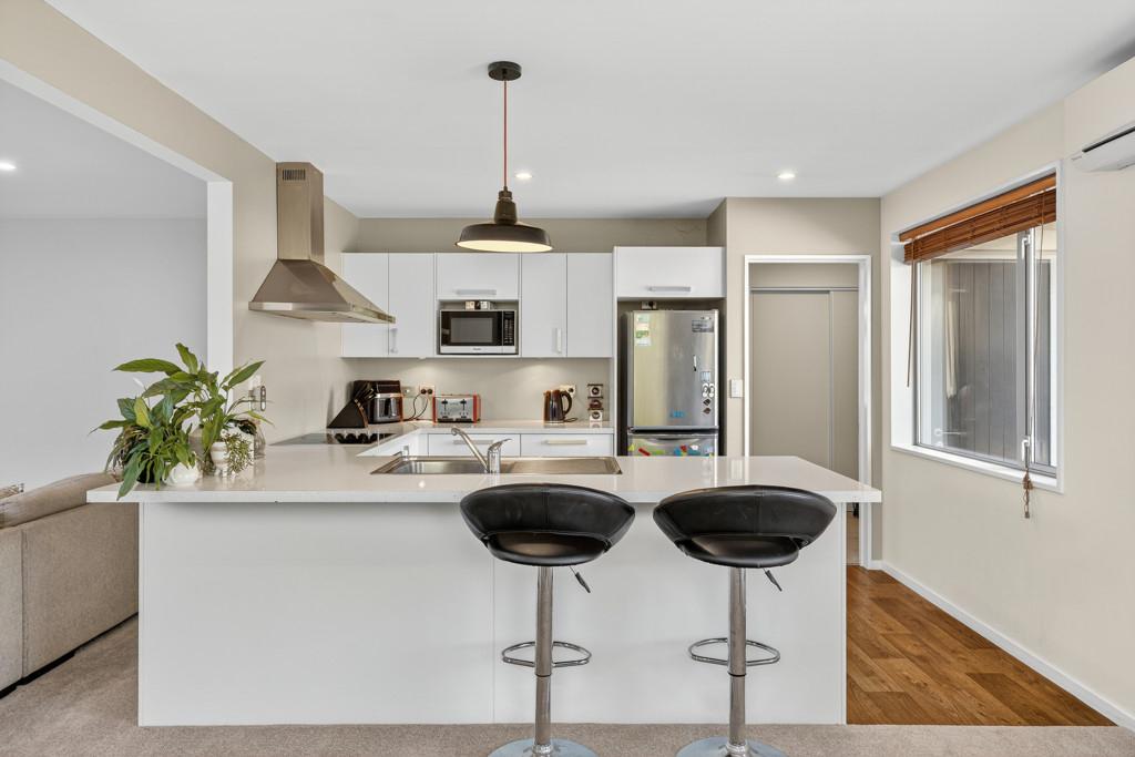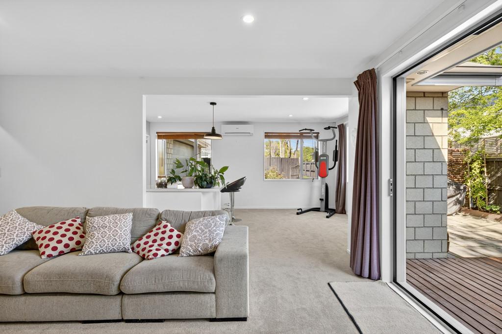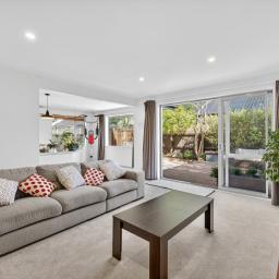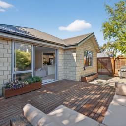 This inviting home blends modern design with everyday comfort. The open-plan layout creates a relaxed atmosphere, with the living area flowing effortlessly to a private deck - an ideal spot for your morning coffee or weekend catch-ups. The contemporary kitchen offers plenty of storage and space to cook and connect, while three double bedrooms, each with built-in wardrobes, provide room for everyone. The main bedroom enjoys Jack and Jill access to the large family bathroom, complemented by a second separate toilet for convenience. Year-round comfort is ensured with double glazing and a heat pump. A double garage with internal access, additional off-street parking, and a fully fenced, freehold section make daily living easy. Nestled on a private rear site surrounded by mature gardens, this is a peaceful haven perfect for families, pets, and those seeking low-maintenance, comfortable living.