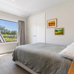 The main residence offers four generous bedrooms, including a ground-floor master suite complete with walk-in wardrobe, ensuite, study, and direct access to the north-facing lawn. At the heart of the home, the chef's kitchen is both striking and practical, featuring leathered granite benchtops, a large scullery, and soaring gable ceilings, flowing seamlessly into the open-plan living and dining areas. Expansive glazing and ranch sliders open to a covered outdoor living space, ideal for entertaining year-round.