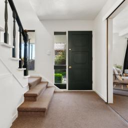 This tidy townhouse offers a thoughtful layout and a genuine sense of home. The entranceway leads into a spacious living area, ideal for relaxing or hosting friends. Through an archway, the dining space opens to a sunny backyard with a neat lawn and easy care plantings, a peaceful spot to enjoy your morning coffee or unwind in the afternoon.