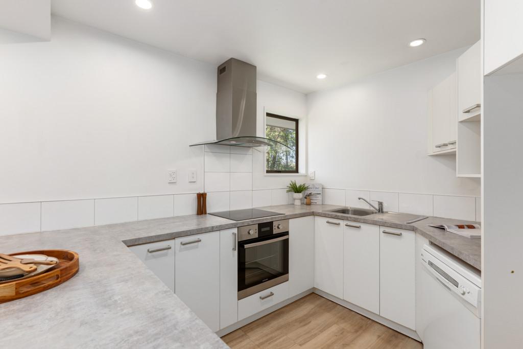 The modernised kitchen is well designed with generous bench space, excellent storage, a dishwasher and cooktop. A separate toilet and linen cupboard complete the downstairs layout, while a heat pump in the living area keeps things comfortable year round.
