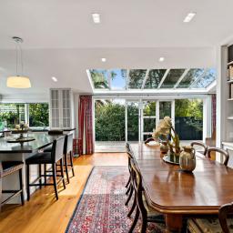 Inside, the floorplan delivers both flexibility and scale. Four bedrooms and three bathrooms are supported by a separate space that can serve as an office, fifth bedroom, or additional living area, alongside multiple living zones designed for both formal entertaining and relaxed family life. Timber detailing, generous proportions, and large windows showcase its heritage, while thoughtful updates ensure modern comfort and everyday ease.
